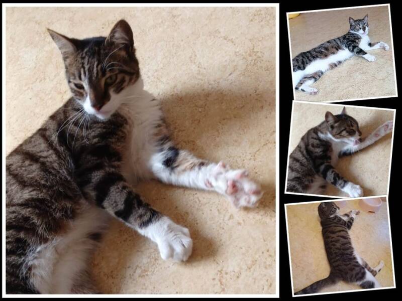 werd door mensen geadopteerd als gratis kitten en werd een tijdje geleden aan ons afgestaan omwille van allergie.