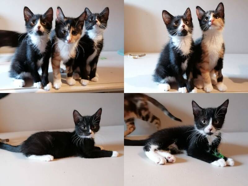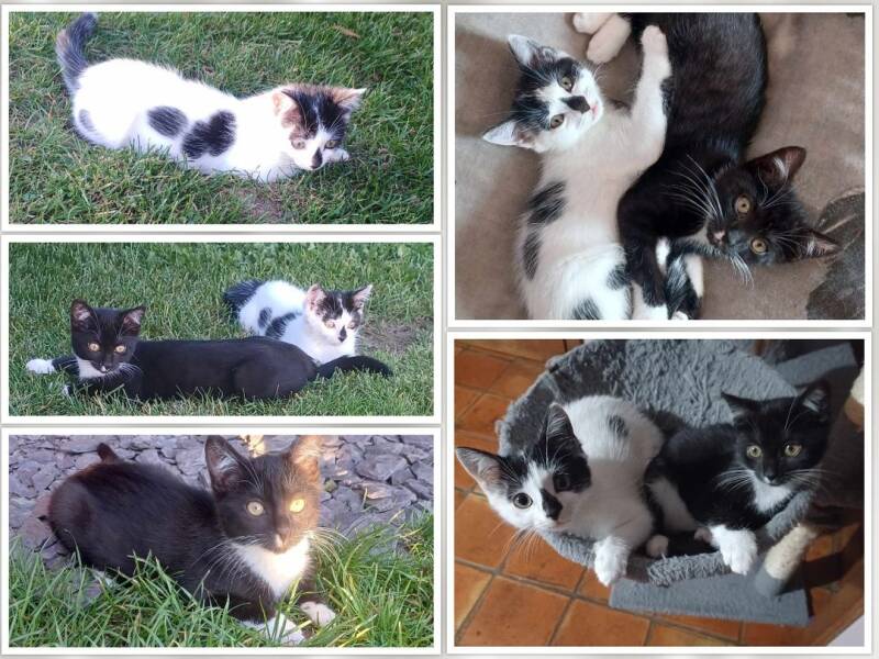 werden buiten gevonden, graatmager en doodsbang. Vermoedelijk waren het de kittens van een kattin die er even voordien werd aangereden en hadden ze zich buiten alleen moeten behelpen.