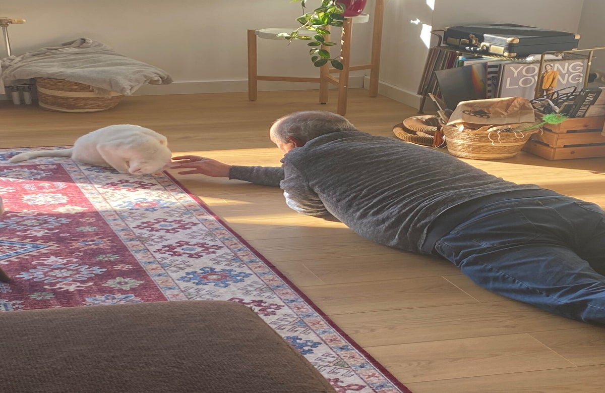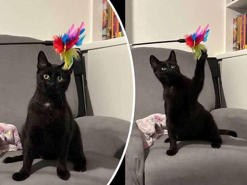 Gelukkig waren er een aantal zaken waar hij sterk op reageert, speelstokjes en natvoer!