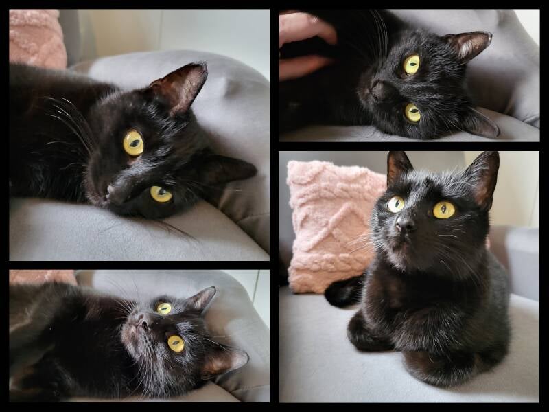 De eerste dagen was het wat wennen voor dit seniorkatje maar al snel liet ze zich zien als de grote knuffelkat die ze is.
