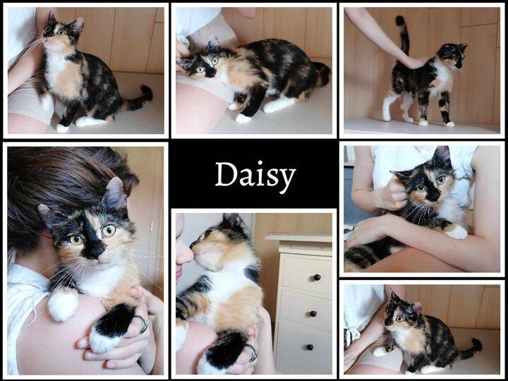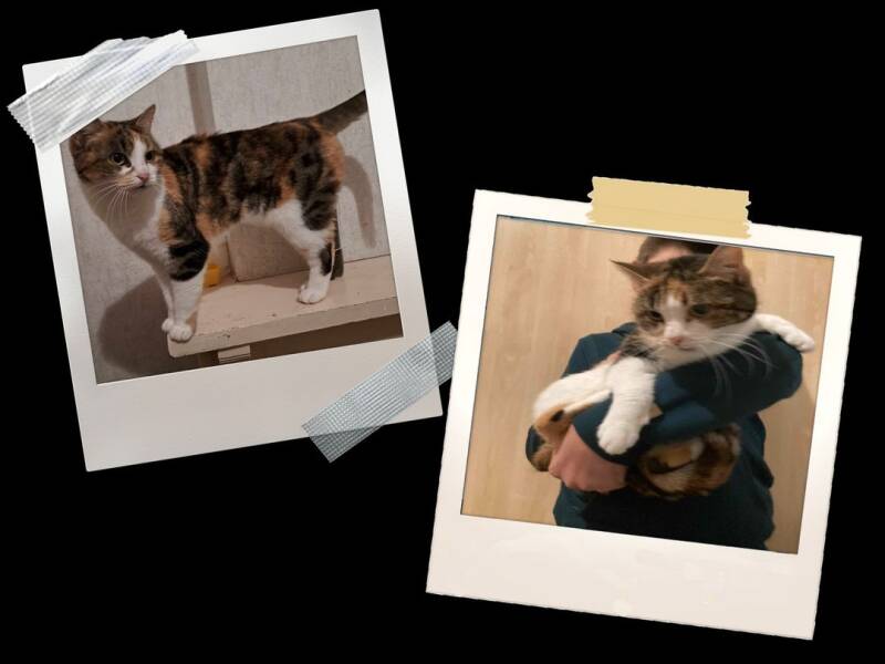 werd gevonden in de tuin van een lieve vrouw. Ze was duidelijk mensen gewoon. Na een vruchteloos zoektocht besliste de vrouw om haar te houden maar dat vonden de reeds aanwezige katten niet zo fijn. Ze vielen haar steeds aan, ontzegden haar toegang tot de etensbakjes en zelfs in de kattenbak lieten ze haar niet gerust. Alle pogingen om het te doen slagen mislukten.