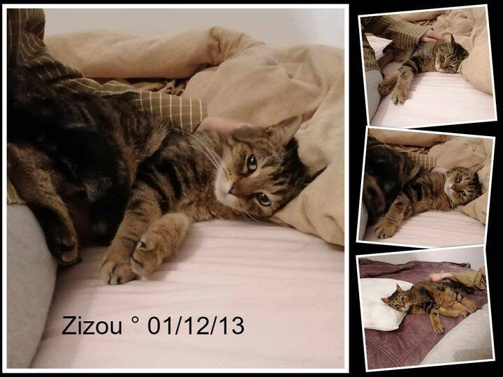 dook vorige zomer plots op in een kolonie zwerfkatten, die verzorgd werden op een veilige locatie in Geraardsbergen. De persoon die de katjes daar eten gaf contacteerde de milieudienst met de bedoeling hem in orde te laten zetten maar Zizou werd rond de jaarwisseling plots erg ziek, at al een paar dagen niet meer en zo kwam hij in spoed bij ons terecht. Bij de dierenarts werd een zware luchtwegeninfectie vastgesteld en een gebit in zeer slechte toestand. Gelukkig testte hij negatief voor aids en leucose.